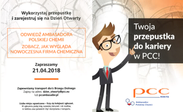 21 kwietnia br. zapraszamy serdecznie wszystkich studentów na Dzień Otwarty Grupy PCC w Brzegu Dolnym.