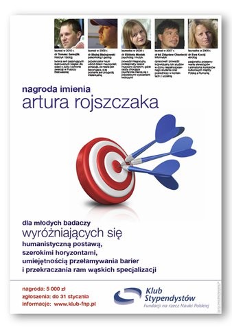 Klub Stypendystów Fundacji na rzecz Nauki Polskiej po raz czternasty ogłasza konkurs o nagrodę im. Artura Rojszczaka, tragicznie zmarłego filozofa, jednego z założycieli klubu. Nagroda to 5000 zł netto, jest przyznawana corocznie młodym doktorom (do 5 lat po otrzymaniu doktoratu), którzy poza wybitnymi osiągnięciami naukowymi wyróżniają się humanistyczną postawą i umiejętnością przekraczania ram wąskich specjalizacji naukowych.