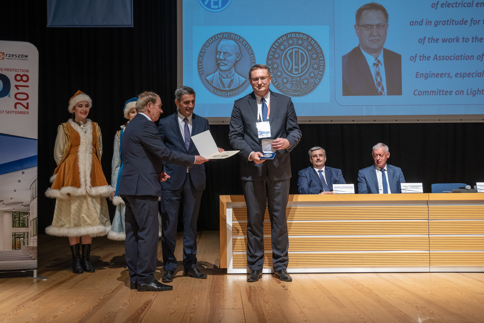 Medal Michała Doliwo-Dobrowolskiego odebrał dr hab. inż. Grzegorz Masłowski, prof. PRz w uznaniu wybitnych osiągnięć dla rozwoju elektrotechniki oraz za wkład w rozwój Stowarzyszenia Elektryków Polskich, a w szczególności Polskiego Komitetu Ochrony Odgromowej.