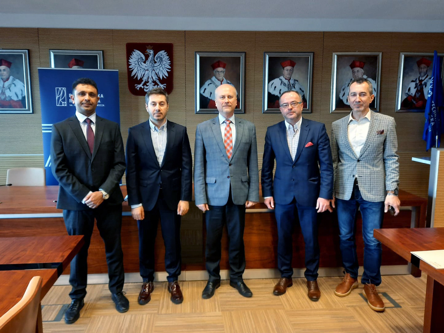 6 maja br. w Sali Senatu Politechniki Rzeszowskiej odbyło się spotkanie przedstawicieli obu stron, którego celem było omówienie możliwości współpracy naukowej i studenckiej uczelni. Naszą uczelnię reprezentowali prorektor ds. studenckich prof. Grzegorz Ostasz oraz prorektor ds. rozwoju i współpracy z otoczeniem prof. Jarosław Sęp, natomiast gośćmi byli Yousif Khalaf, prezes JDK-team Consulting, Yousif Azeez Barzani z Knowledge University, Dalzar Nashwan Salem, pełnomocnik Knowledge University ds. współpracy międzynarodowej oraz Piotr Grabek, koordynator współpracy pomiędzy polskimi a irackimi przedsiębiorcami.