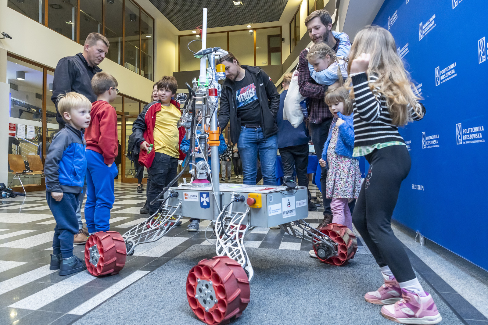 W budynku V oprócz strefy pokazowej i wystawienniczej znajdował się punkt informacyjny, w którym najmłodsi otrzymywali ulotkę, aby móc wziąć udział w zabawie polegającej na zebraniu ośmiu naklejek ukrytych na wydziałach uczelni. Komplet naklejek można było wymienić na okolicznościowy dyplom i upominek. Ponieważ teren Politechniki Rzeszowskiej jest rozległy, organizatorzy przygotowali przewodnik i interaktywną mapę uczelni w Google Maps, aby ułatwić uczestnikom poruszanie się po budynkach.