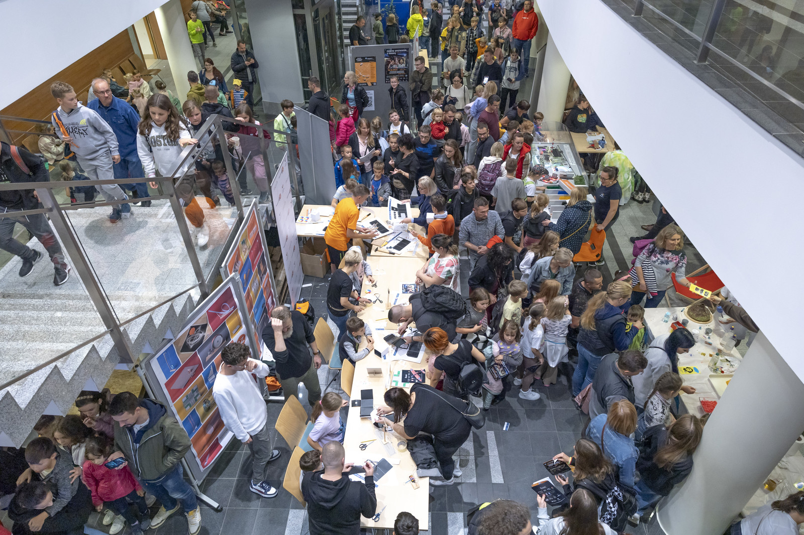 Zwiedzenie warto było rozpocząć od budynku V, gdzie poza strefą pokazową i wystawienniczą z mnóstwem atrakcji znajdował się punkt informacyjny, w którym najmłodsi otrzymywali ulotkę, aby móc wziąć udział w zabawie polegającej na zebraniu ośmiu naklejek ukrytych na wydziałach uczelni. Komplet naklejek można było na koniec wymienić na okolicznościowy dyplom i upominek. Ponieważ teren Politechniki Rzeszowskiej jest rozległy, organizatorzy przygotowali przewodnik i interaktywną mapę uczelni w Google Maps, aby ułatwić uczestnikom poruszanie się po budynkach.