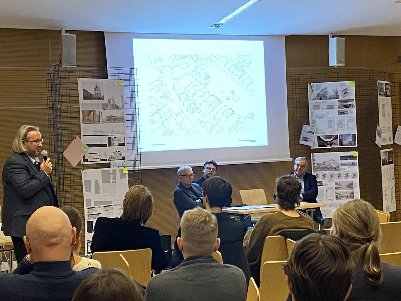 Dyskusję pokonkursową prowadzili przedstawiciele Sądu Konkursowego: arch. Wojciech Fałat – sędzia referent, sędzia konkursowy Stowarzyszenia Architektów Polskich (SARP) Oddział Rzeszów, arch. Tomasz Kudła – sędzia konkursowy Stowarzyszenia Architektów Polskich (SARP) Oddział Rzeszów, arch. Janusz Sepioł – sędzia ze strony zamawiającego, Architekt Miasta Rzeszowa. Na początku wydarzenia goście mieli przyjemność wysłuchać wystąpienia online arch. Jerzego Szczepanika-Dzikowskiego – przewodniczącego Sądu Konkursowego, sędziego konkursowego Stowarzyszenia Architektów Polskich (SARP) Oddział Warszawa.