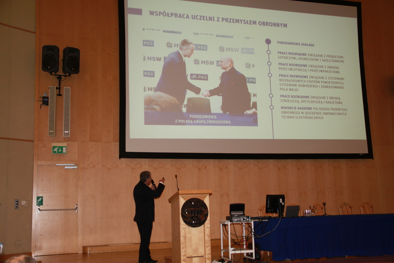 Naszą uczelnię reprezentował dr hab. inż. Aleksander Mazurkow, prof. PRz, dziekan Wydziału Mechaniczno-Technologicznego w Stalowej Woli. Podczas sesji planarnej wygłosił prezentację pt. „Rola Politechniki Rzeszowskiej w potencjale rozwojowym przemysłu obronnego”. Prof. Mazurkow poruszył tematy dotyczące przemysłu obronnego w województwie podkarpackim. Opowiedział m.in. o potencjale naukowo-badawczym naszej uczelni oraz o edukacji wojskowej studentów i ich projektach na rzecz przemysłu obronnego.