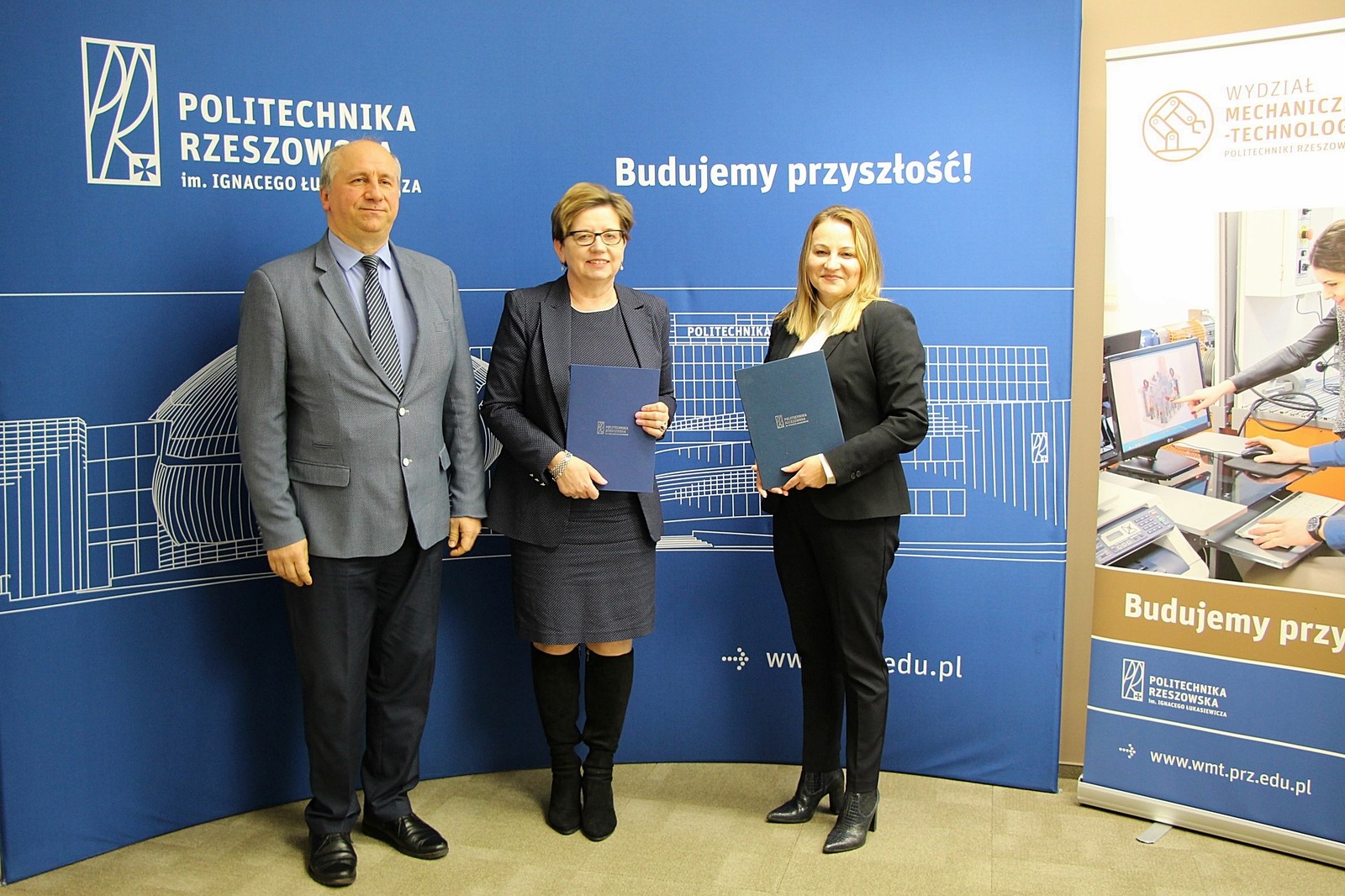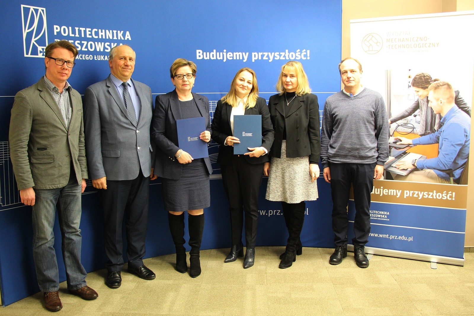Politechnika Rzeszowska podpisała porozumienie o współpracy z Zespołem Szkół Nr 2 im. Eugeniusza Kwiatkowskiego w Nowej Dębie. Dokument podpisały prorektor ds. kształcenia dr hab. Iwona Włoch, prof. PRz oraz dyrektor szkoły Bogumiła Małajowicz i kierownik szkolenia praktycznego Maria Jachyra. Wydział Mechaniczno-Technologiczny, w którego siedzibie odbyło się uroczyste podpisanie, reprezentowali dziekani dr hab. inż. Andrzej Trytek, prof. PRz, dr hab. inż. Mirosław Tupaj, prof. PRz i dr Andrzej Chmielowiec.